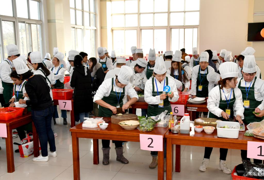 12月12日下午,由校团委和后勤集团联合举办的万博体育bet 校园美食节之第三届“最美家乡菜”大赛决赛在南苑学生食堂盛大举行。来自18支学生代表队54名选手经过前期初赛一路过关斩将,杀入最终决赛,盛况空前。开幕式上,校党委常委、副校长吴胜红、校团委书记陈晨子、后勤服务集团总经理朱兴同先后致辞,经济与管理学院吴邦虎同学代表参赛选手发言,中国烹饪大师、国家高级烹调师陶宗虎代表评委发言,来自校办、宣传部、学生事务部、后勤服务部主要领导亲临大赛现场。