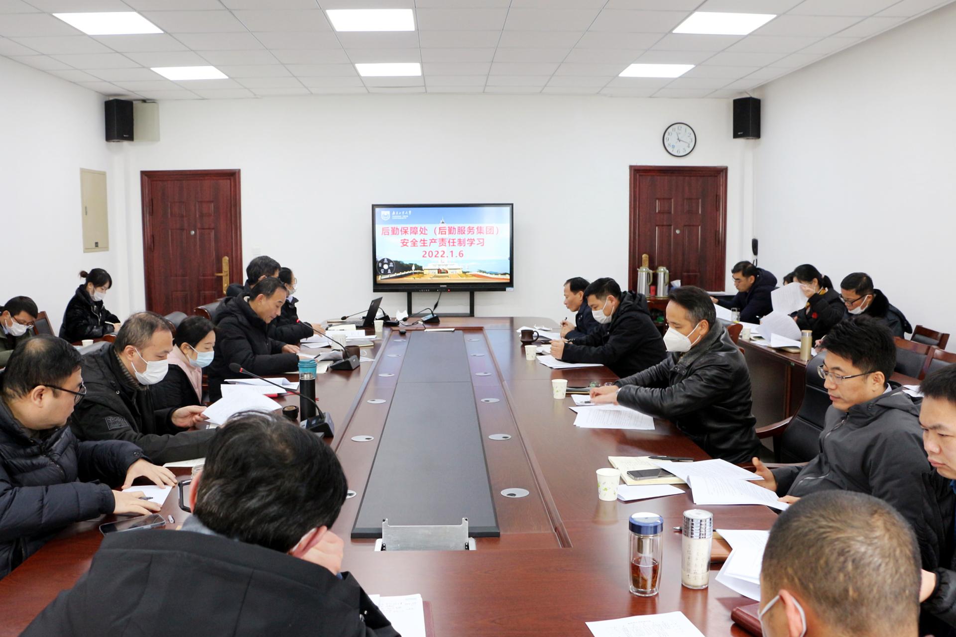 2022年1月6日,后勤保障处(后勤服务集团)组织会议专题学习了南工委办下发的《万博体育bet 安全生产责任制规定实施细则》(以下简称《细则》)。处(集团)党政领导班子成员、各二级部门负责人参加了会议。