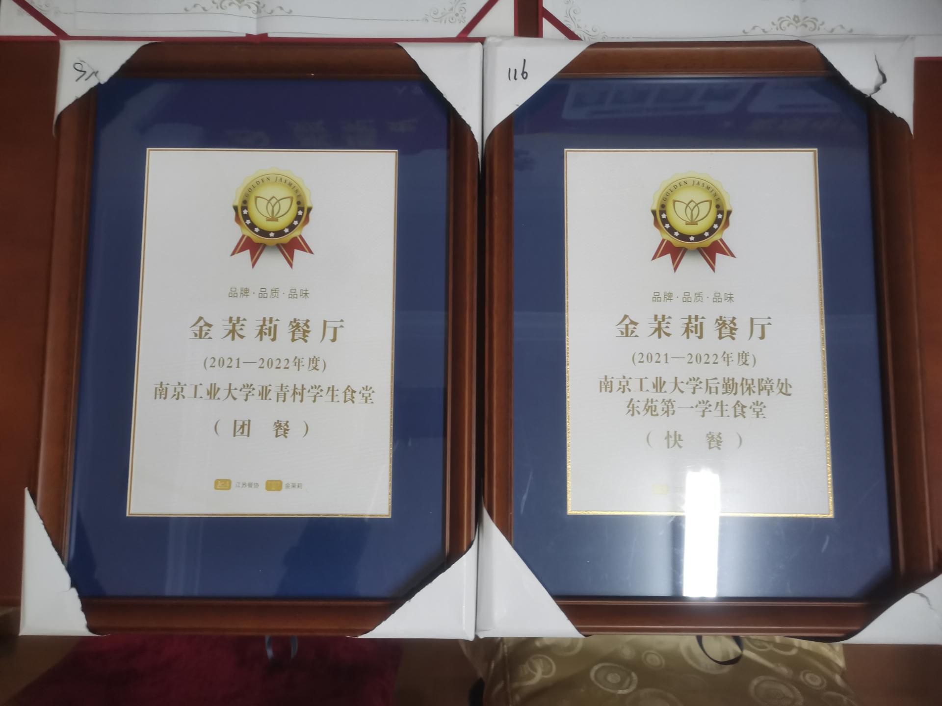 12月底在常州举行的2020金茉莉美食盛典上,餐饮服务中心亚青村学生食堂和东苑第一学生食堂荣获省餐饮行业协会正式发布2021-2022年度金茉莉餐厅称号。