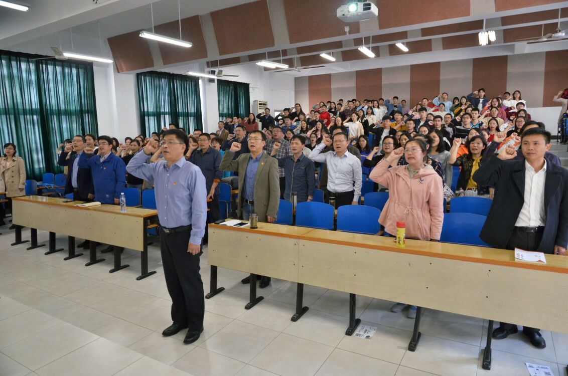 活动伊始,经济与管理学院党委书记赵顺龙带领学院全体党员重温入党誓词,接着以“守教育初心,担育人使命,培养担当民族复兴大任的时代新人”为主题,强调了党员的初心和使命,根据主题教育调研,结合思想政治、组织作风、业务能力三个方面从微观层面具体诠释了如何在工作中担起使命,激励学院全体党员不忘初心,砥砺前行。