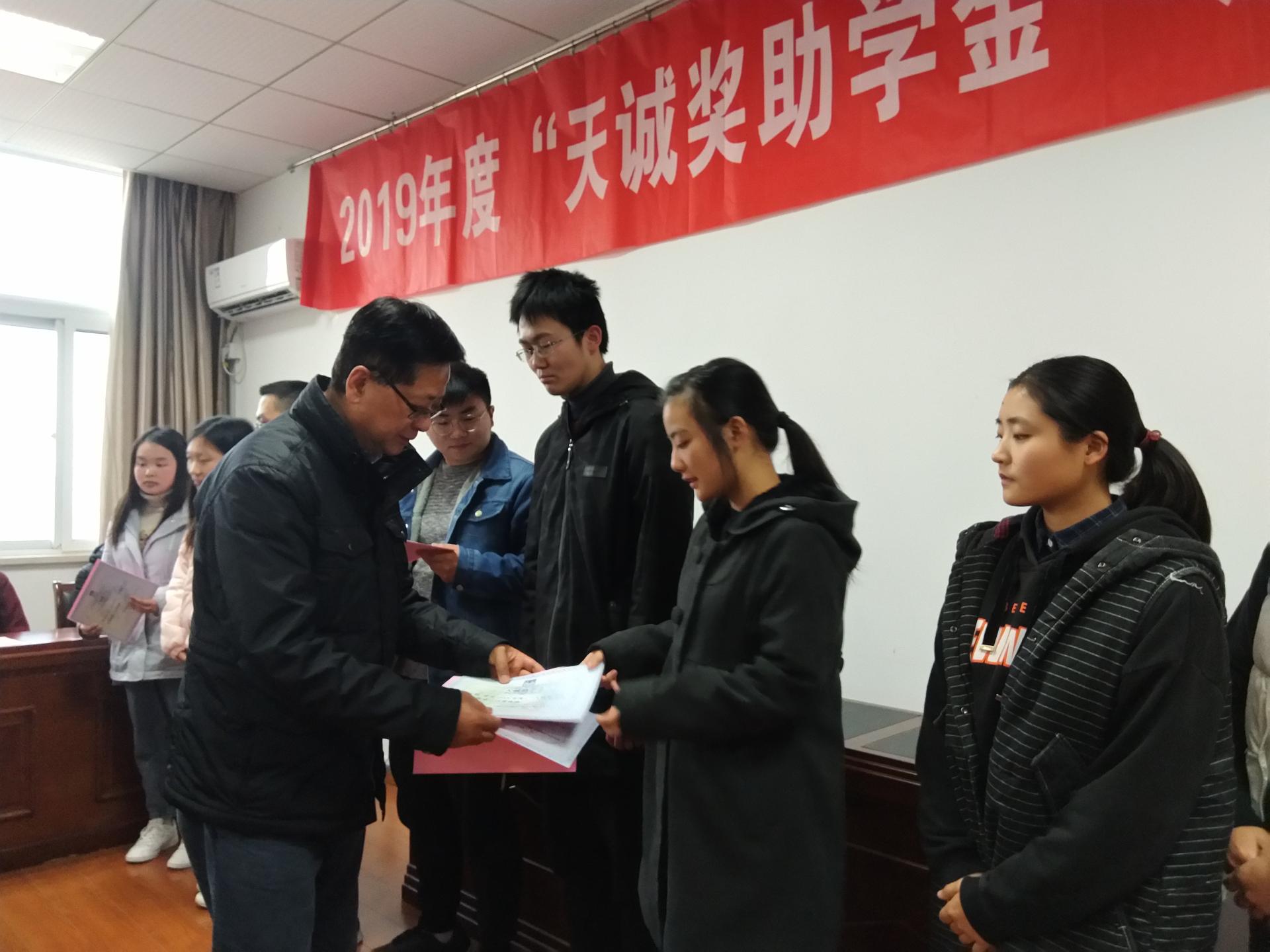 “天诚奖助学金”传递着浓浓的校企情谊,未来,还将继续惠及更多勤奋向上的学子们。最后,孙书记对获奖助学生提出以下两点希望:一是希望同学们心怀感恩,志存高远,为自己的人生开阔出一片更加广阔、更加崭新的天地;二是希望同学们抓住机遇,鼓励学生积极参与到设奖单位校企合作协同育人的实习实践中去。