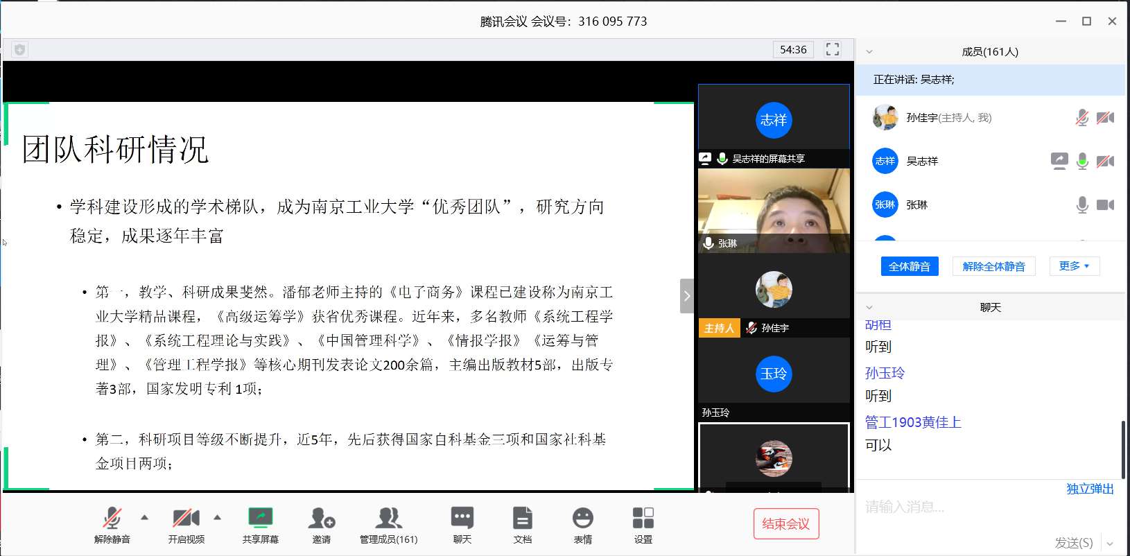 特殊时期“停课不停学,停课不停教”,为切实帮助我院大一学生在即将到来的专业分流中选择更适合自己的专业,3月18日晚,我院成功举办管工、工商大类专业分流指导云会议。本次会议邀请了管理工程系主任张琳教授、朱晓峰教授、工商管理系主任刘新艳副教授和相关专业老师围绕学科特色、研究方向和发展前景,为同学们进行了生动详细的指导与答疑。
