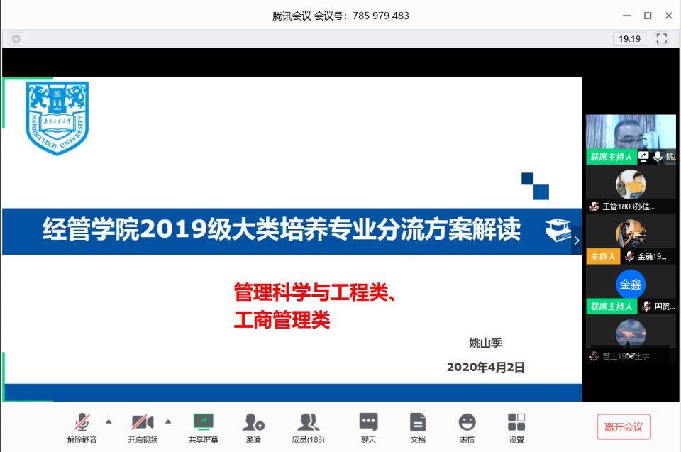 4月2日晚,经济与管理学院成功举办线上管工、工商类专业分流指导交流会。本次会议由副院长姚山季主讲,相关专业系主任、辅导员和全体2019级管工、工商类学生参加。