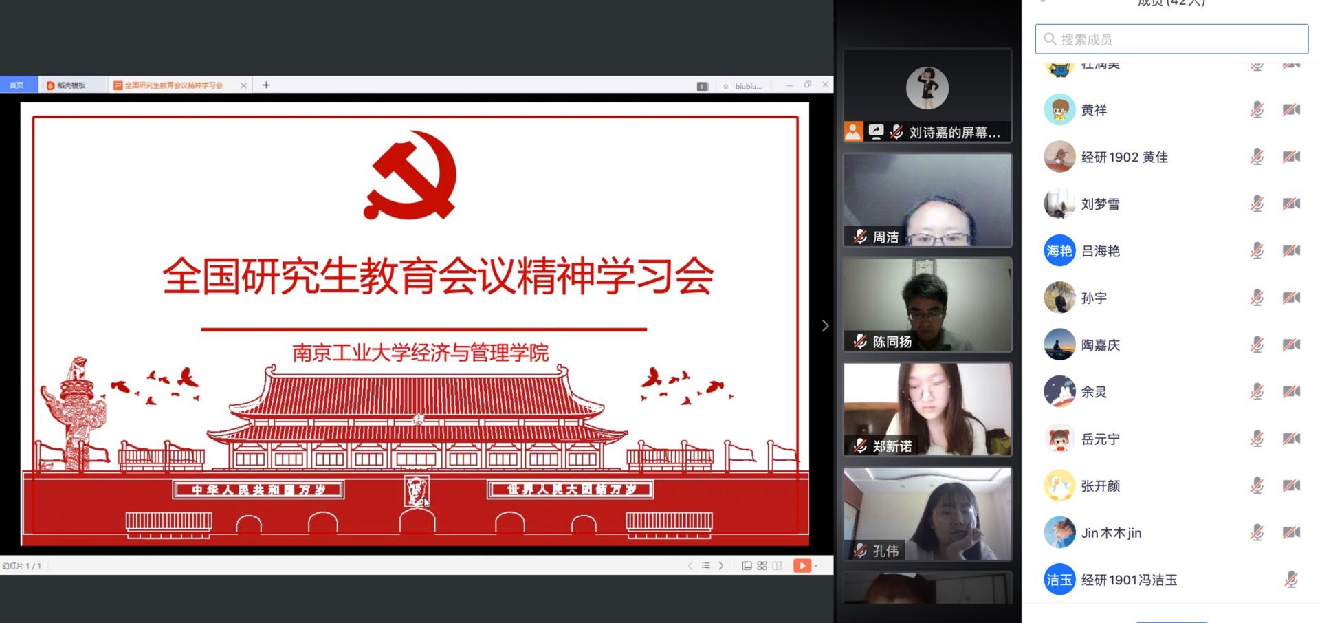 8月15日,经管学院召开全体研究生会议,专题学习研讨全国研究生教育会议精神。学院党委副书记孙宇,副院长陈同扬,院长助理、学科办主任周洁老师、辅导员黄祥老师及全体研究生参加会议。