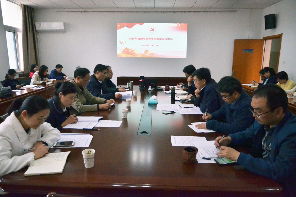 巡察组副组长张健宣读了《关于巡察经济与管理学院党委的反馈意见》,指出,学院党委能落实全面从严治党主体责任,深入学习贯彻习近平新时代中国特色社会主义思想和党的十九大精神,以党的建设引领学院发展,团结带领师生,在系统谋划中整体推进学院的各项工作。