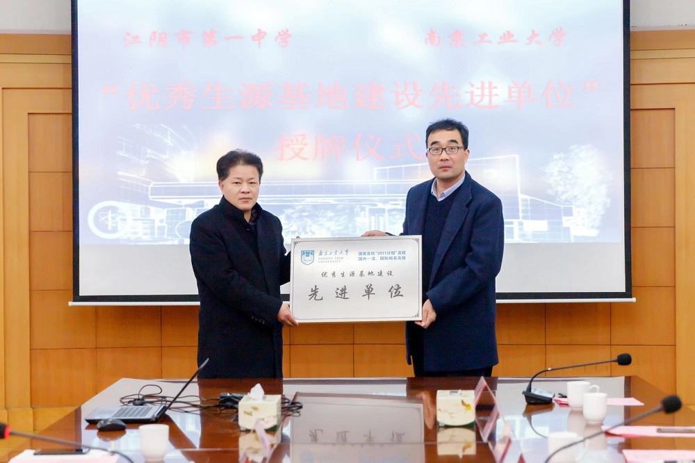 无锡市辅仁高级中学校长张军、江阴市第一中学校长李忠分别代表两校致欢迎辞,介绍了学校发展历程、办学特色和生源情况。经济与管理学院党委副书记岳克勤和校招办副主任季青春分别从我校发展历史、专业特色、人才培养和招生政策等方面进行了全面介绍,对两校输送了大批优秀学子表达感谢,并向两所中学授予“优秀生源基地建设先进单位”铜牌。随后双方围绕新高考改革方案、综合评价录取、职业生涯规划辅导、优秀生源推荐等进行深入的探讨和交流。