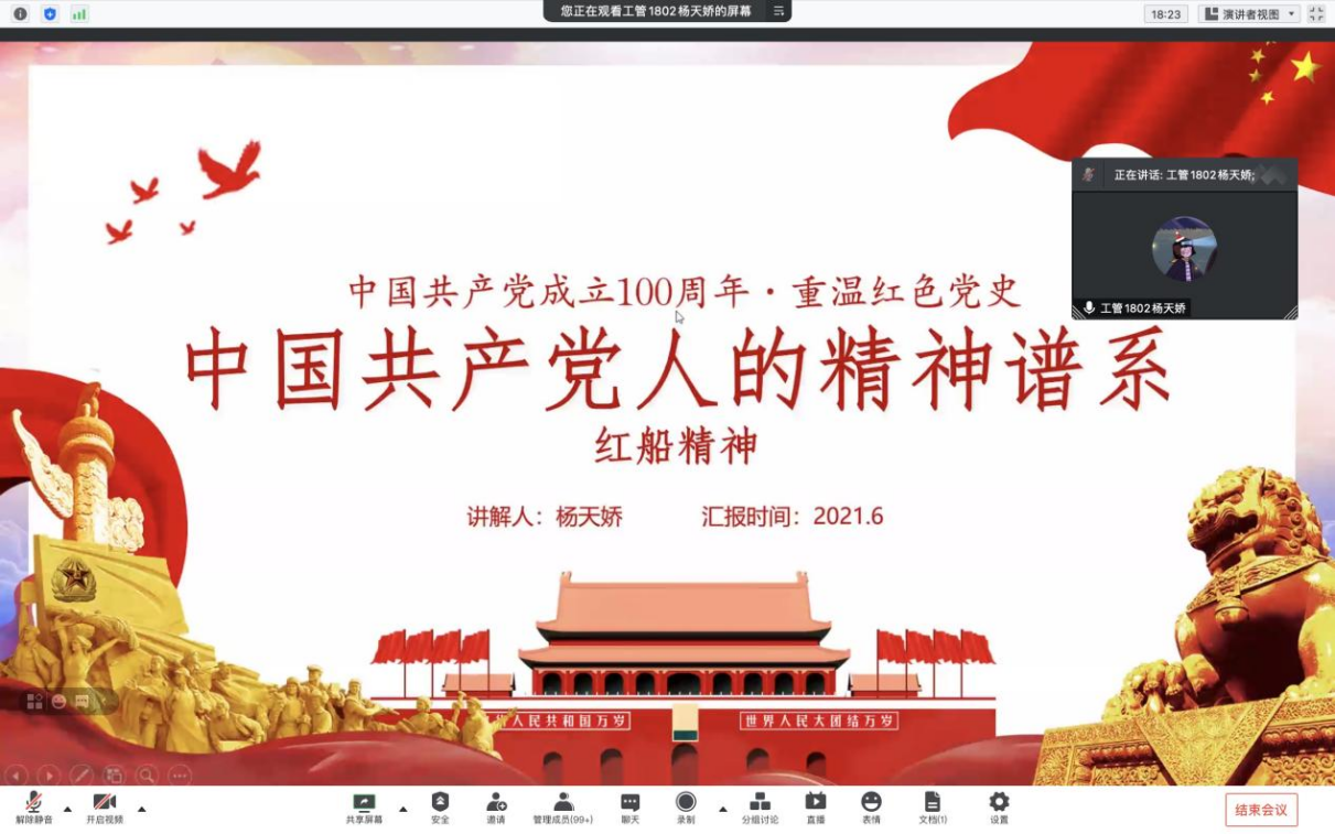 为积极引导广大学生党员从党史学习教育中汲取奋进力量,赓续红色血脉,担当时代重任。6月3日晚19:00,经济与管理学院开展了第十一期“学思践悟温‘四史’•奋发有为强知行”主题微党课。我院本科生第一党支部杨天娇和王蕴怡同学担任主讲,一百多名学生党员参加了本次直播学习。