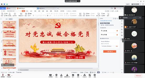 孙萌同学从党员身份出发,与大家一起学习党章、重温入党誓词,接受党的政治理论熏陶,汲取革命前辈精神力量,号召大家以实际行动践行“讲政治、有信念,讲规矩、有纪律,讲道德、有品行,讲奉献、有作为”,争做新时代合格的大学生党员。