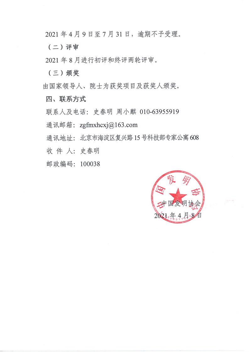 【成果报奖】中国发明协会关于2021年度“发明创业奖—创新奖”评选工作及补充的通知