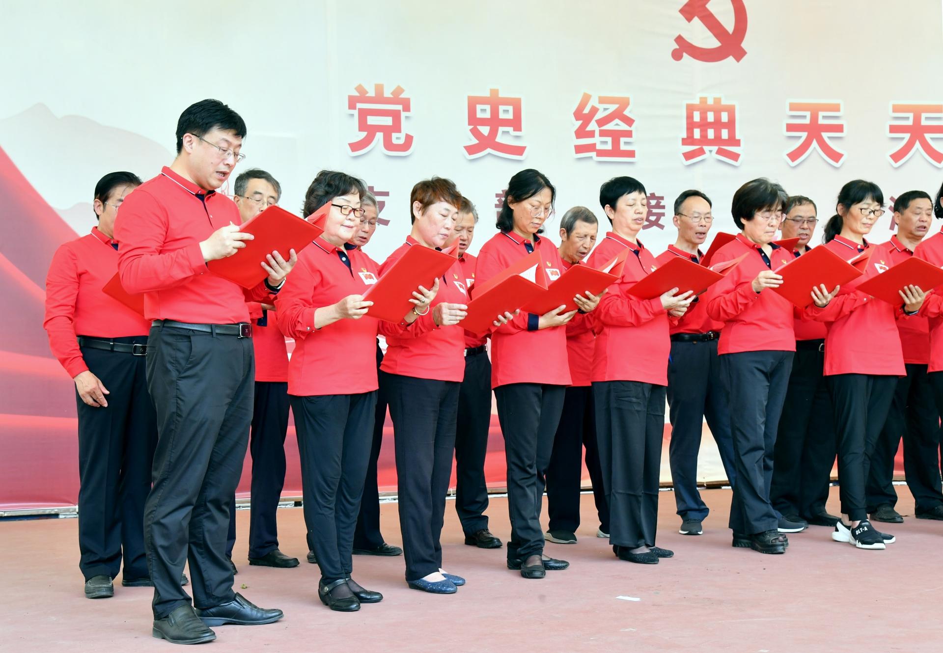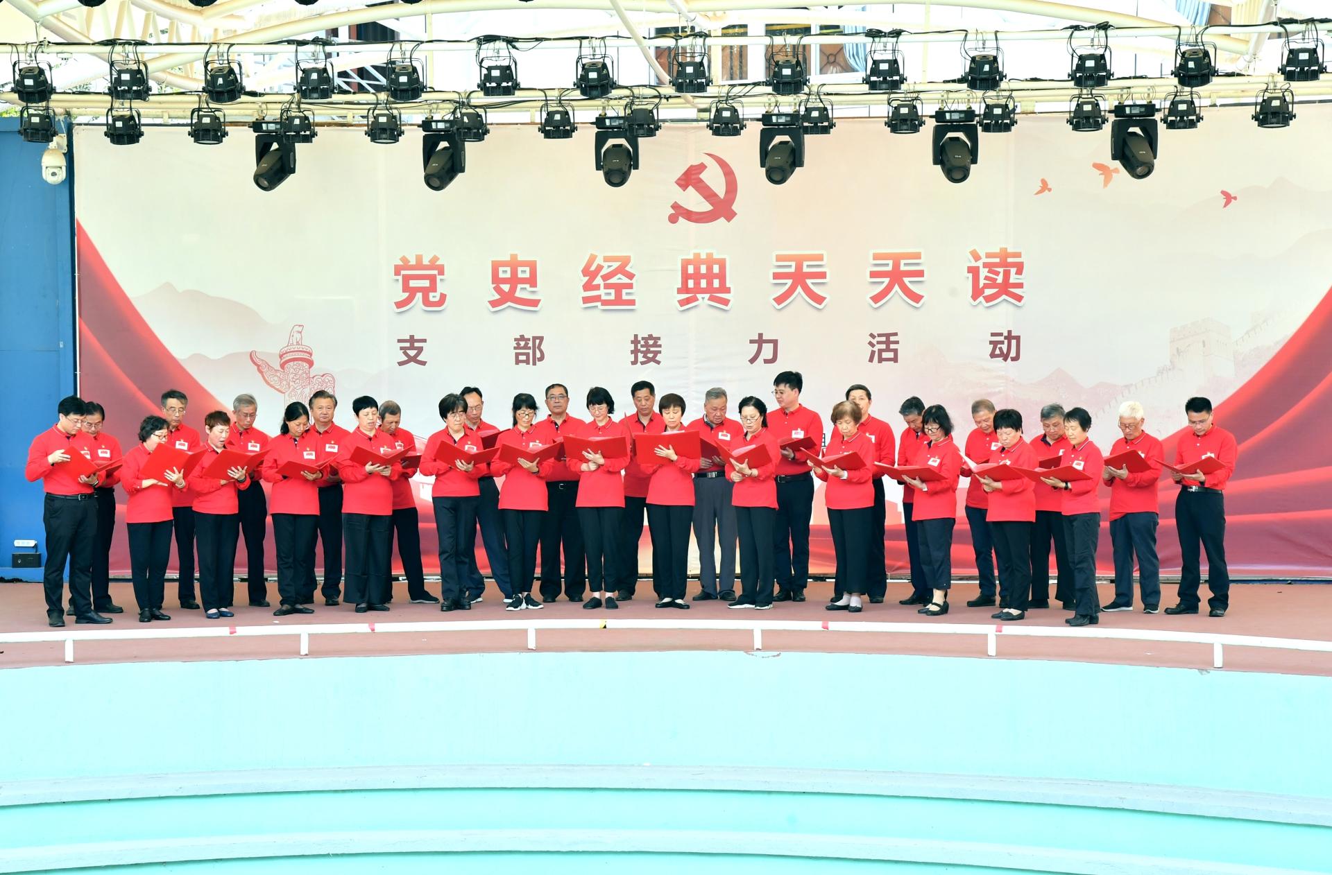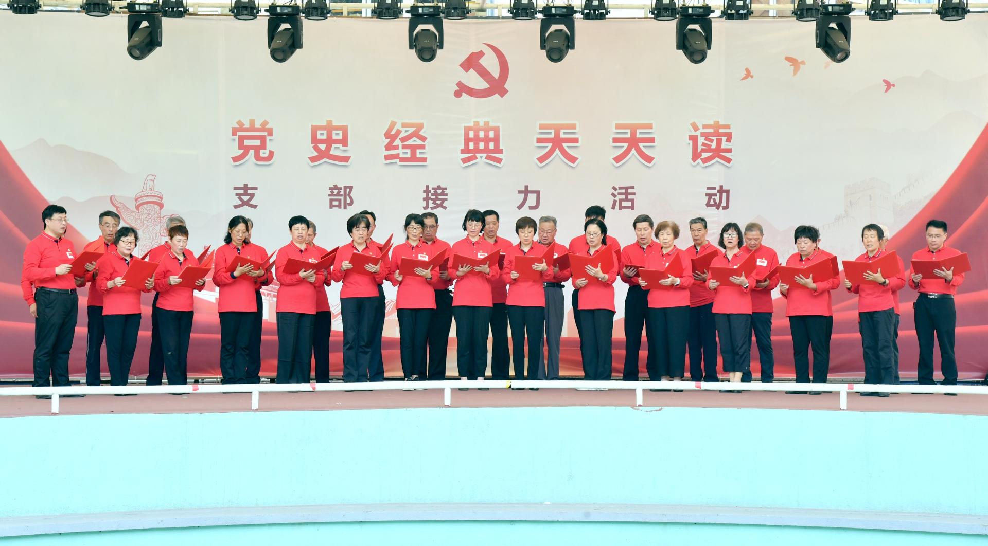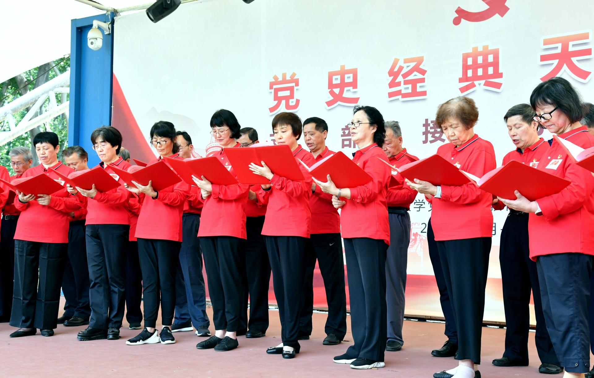 6月23日上午,在离退休党工委组织下,30名党员在江浦校区音乐台诵读了《中国新民主主义革命胜利的原因和基本经验》(摘自《中国共产党简史》)和《把红色基因传承好,把红色江山世世代代传下去》(2019年8月19日至22日,习近平总书记在甘肃考察时的讲话节选)两个部分。