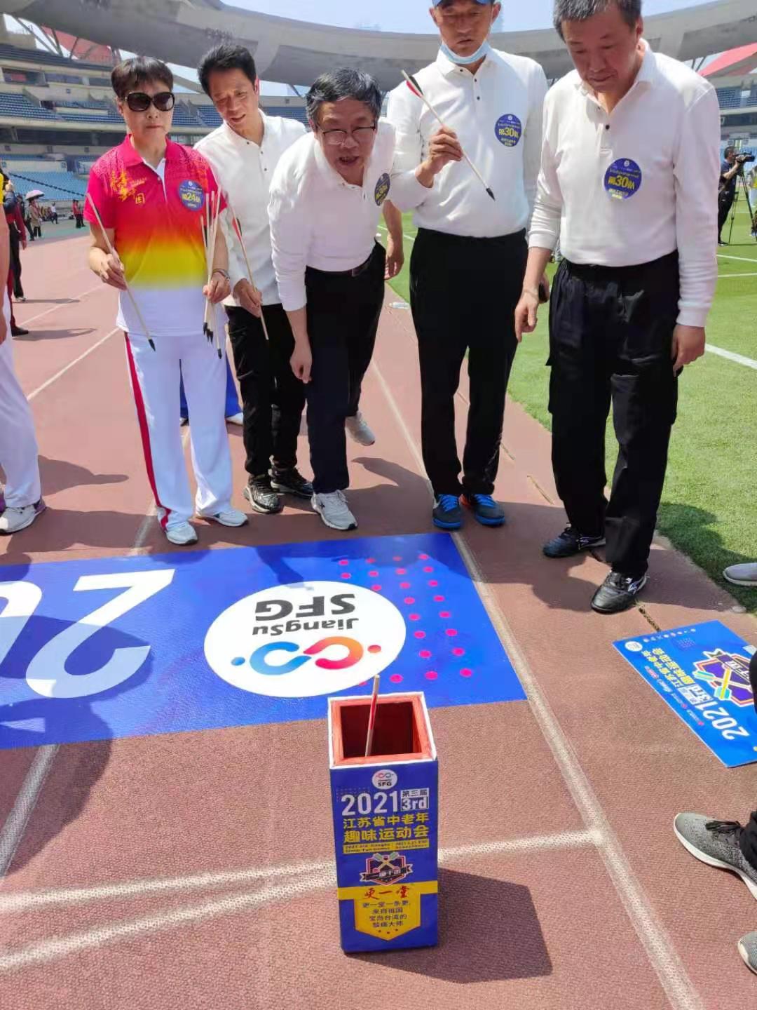 5月21日,由江苏省老体协、老科协、江苏广电总台联合举办的“江苏省第三届中老年趣味运动会”在南京奥体中心隆重举行,省电视台全程直播了该活动。本届运动会吸引了部分在宁高校、省属科研院所、大型企业、南京市社区等四十九个代表队参加,规格高、影响大、竞争激烈。