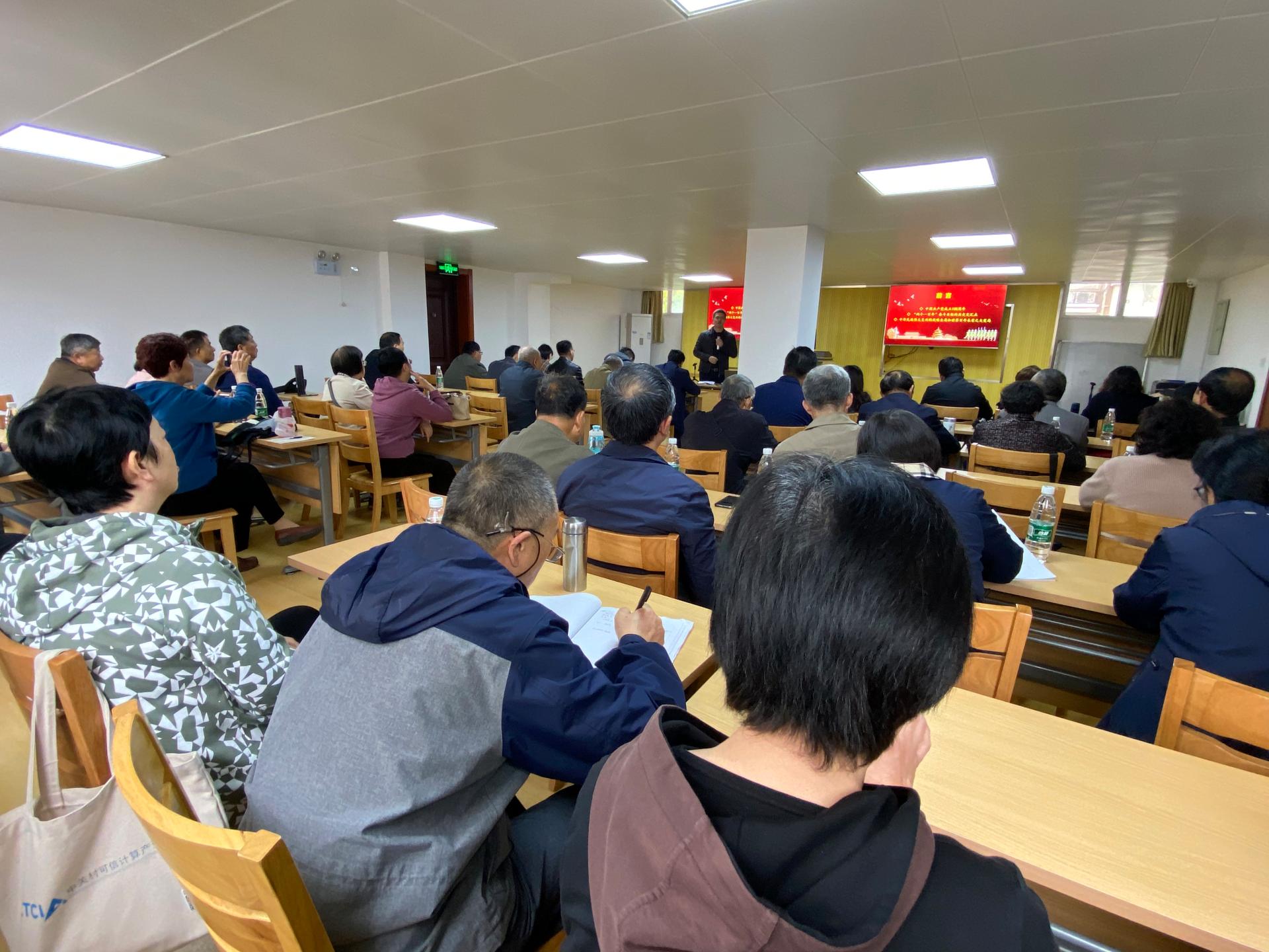 离退休领导班子全体成员、党工委委员、各支部书记及委员、离退休工作处全体人员听取宣讲。
