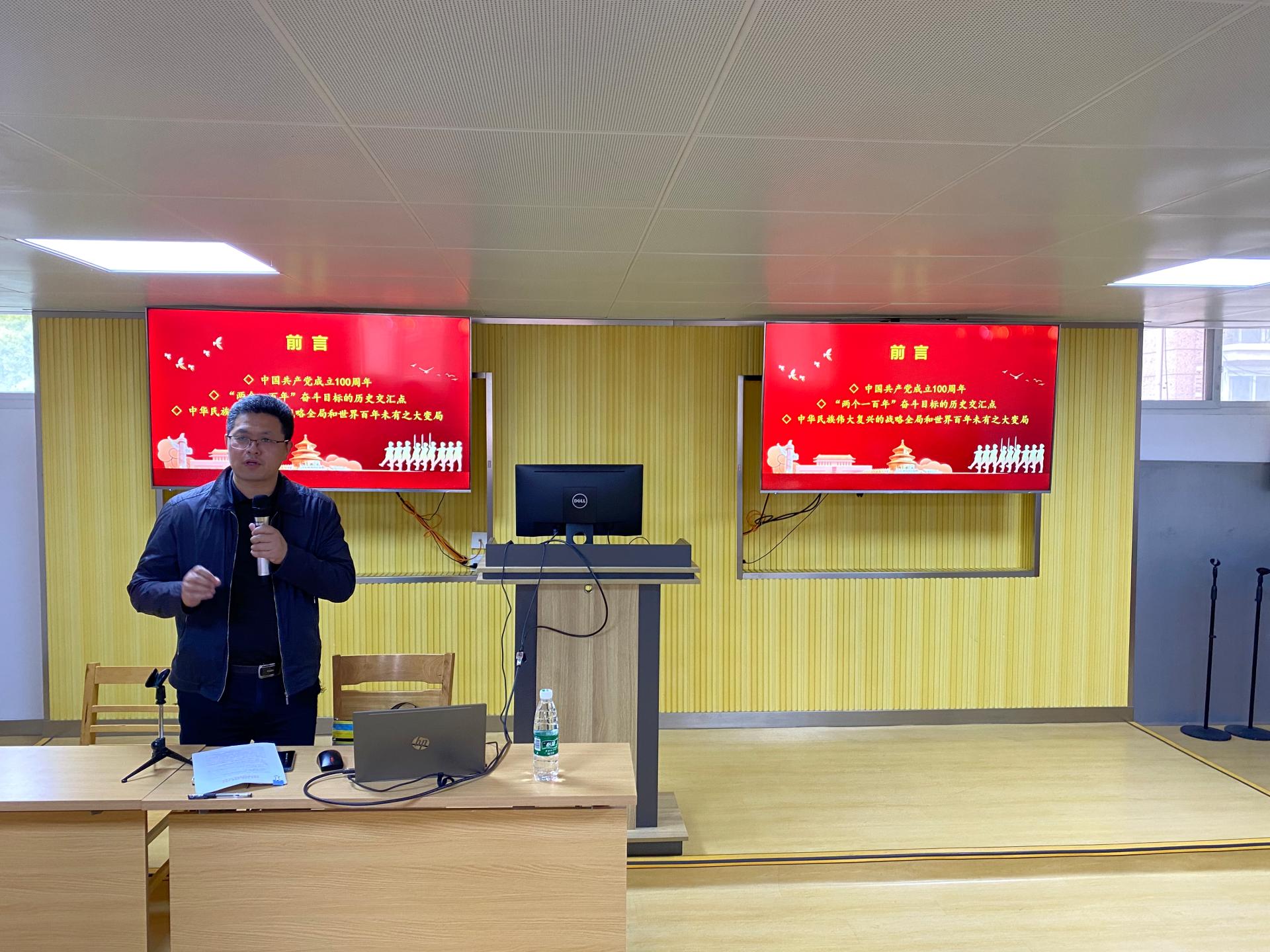 马明辉书记以“学党史、悟思想、办实事、开新局,以优异成绩迎接建党100周年”为主题,围绕“充分认识开展党史学习教育的重大意义,切实增强学党史受教育的行动自觉;深学深悟习近平总书记重要讲话精神,以此为遵循,全身心投入学习教育之中;学好基本著作,用好参考资料,全面了解党的百年奋斗历程和伟大历史成就;准确把握党史学习教育的重点,学懂弄通做实习近平新时代中国特色社会主义思想;坚持用唯物史观认识和把握历史,坚持把学习教育同解决实际问题结合起来”作了宣讲。