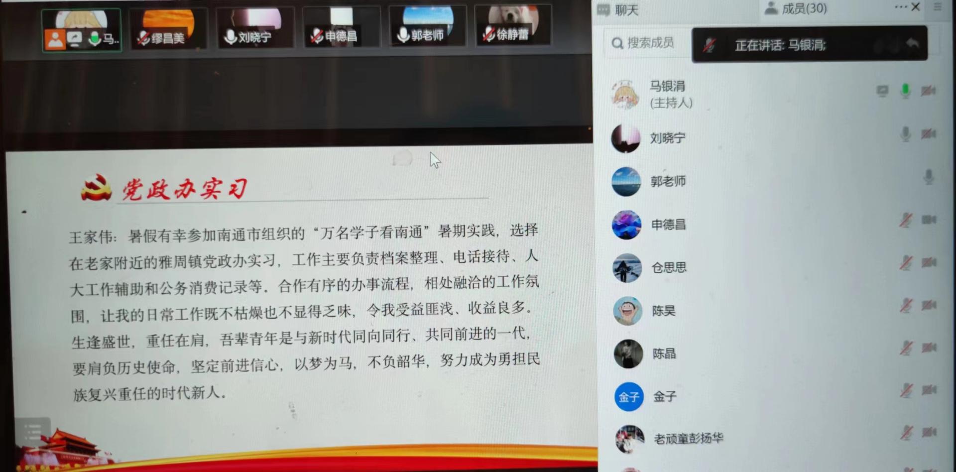 行政管理2002团支部举行线上社会实践交流分享会
