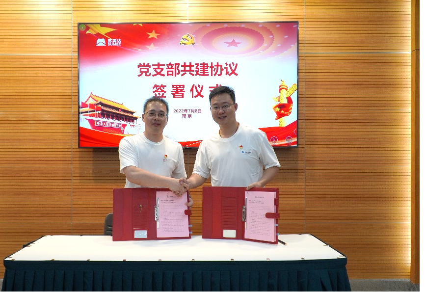 为了强化党建引领作用,促进校企共融发展,2022年7月8日上午,机械学院党委书记蒋远喜、院长赵建平及教师第九党支部全体党员赴苏美达股份有限公司与苏美达成套公司第四党支部开展结对共建活动。苏美达成套公司副总经理、第四党支部书记丁杨惠勤、苏美达成套公司国际事业部总经理叶炬参加了共建活动。