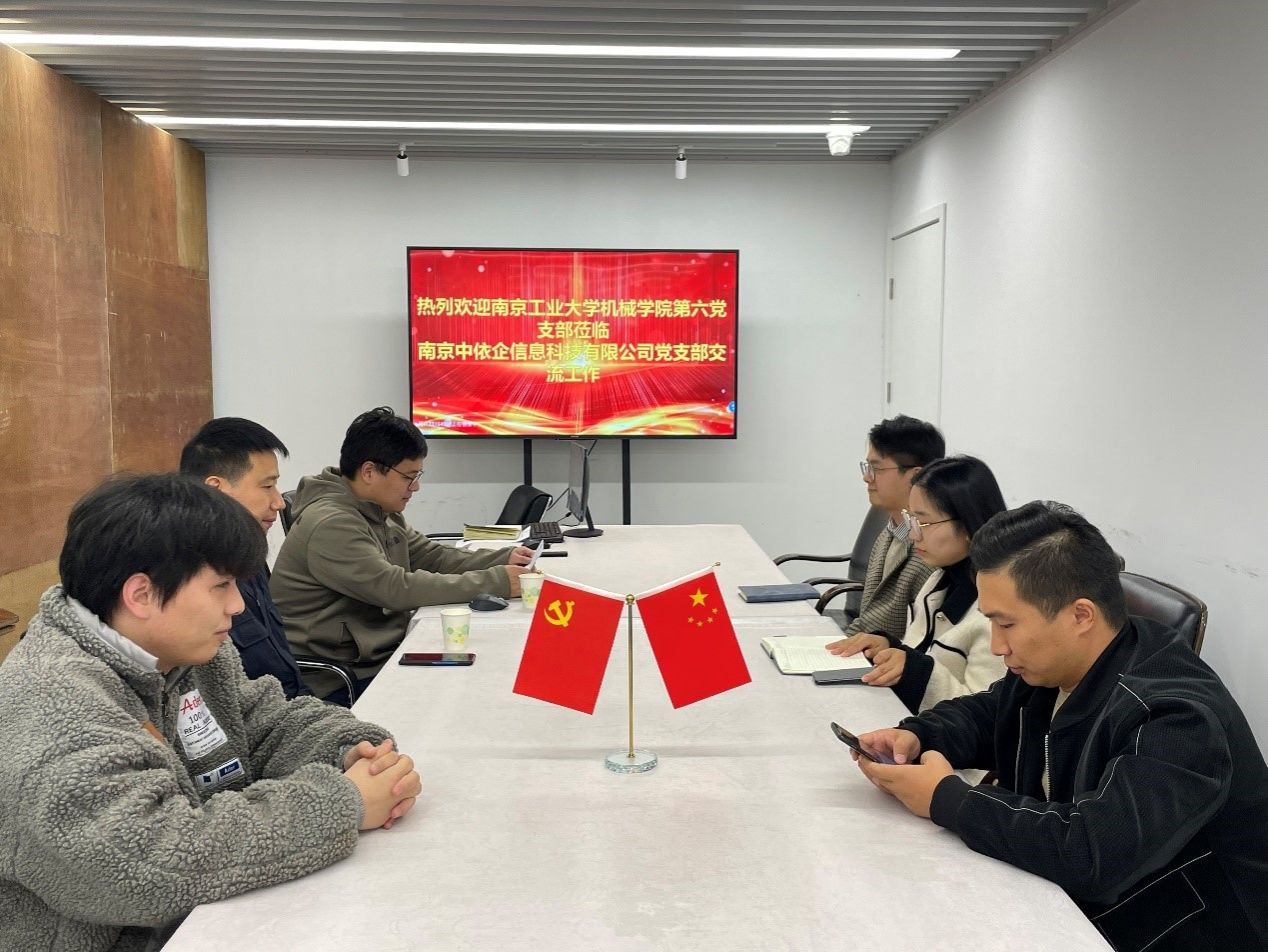 为了深入学习贯彻党的二十大精神,实施科教兴国战略,11日29日上午,机械与动力工程学院党委教师第六党支部联合中依企信息科技有限公司党支部,开展了“党建+业务”互通互融推进高质量发展”主题党日活动。南京中依企信息科技有限公司是一家主营企业科技服务、法律及税务咨询的,长期在专精特新企业与高校之间发挥桥梁以及纽带作用,形成很强的示范以及群雁效应。机械学院教师第六党支部书记康正阳,骨干教师代表季昊成、李振,中依企董事长高盼君博士以及双方党支部党员代表参加了此次活动。
