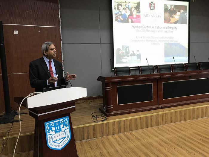 10月19日下午,美国阿肯色大学(University of Arkansas)Ashok Saxena教授应邀为机械学院师生作了名为Fracture Control and Structural Integrity的精彩报告。