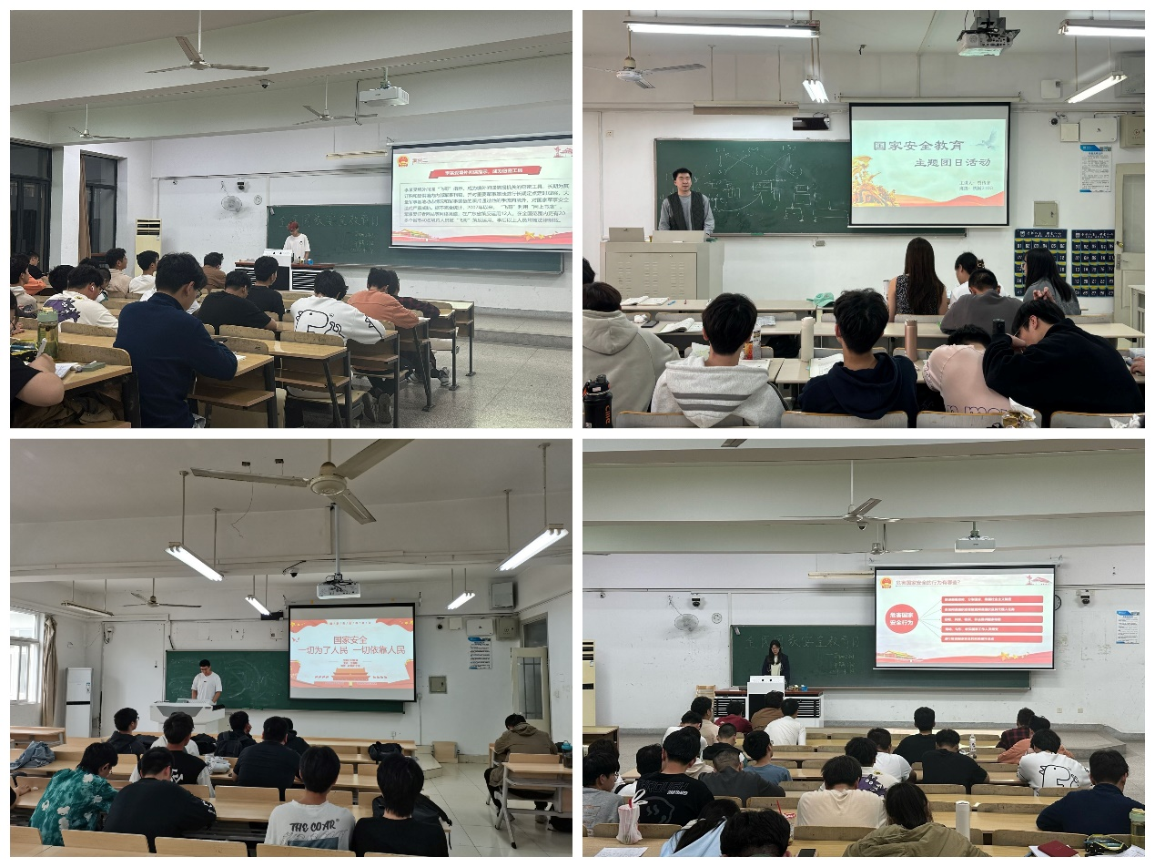 为学习贯彻习近平总书记关于坚持总体国家安全观的重大论述,引导广大团员和青年深入学习贯彻总体国家安全观,在第九个全民国家安全教育日来临之际,机械与动力工程学院团委组织各年级团支部开展了以“国家安全,青春挺膺”为主题的系列团日活动。