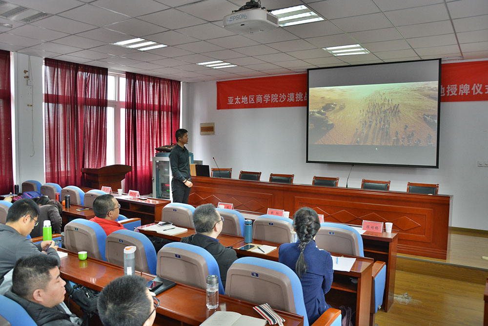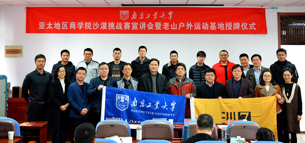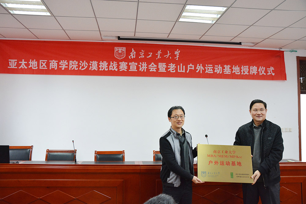3月24日,第七届亚太地区商学院沙漠挑战赛宣讲会暨老山户外运动基地授牌仪式在万博体育bet 丁家桥校区教学楼501报告厅成功举行。 出席本次活动的有经济与管理学院院长王冀宁教授、副院长陈同扬教授、南京老山旅游度假区管委会办公室钱纲副主任、江苏新与成教育集团代表张波先生、韩品栋先生、刘建女士、亚沙组委会队员中心,南理工经管院紫金主张户外俱乐部理事长高岩先生、MBA、MEM、MPAcc教育中心主任张长江教授、经济与管理学院吴翔华副教授、MBA中心工作人员、沙七战队预备队员、17级MBA、MEM学员。会议由万博体育bet MBA联合会主席朱怀雷同学主持。