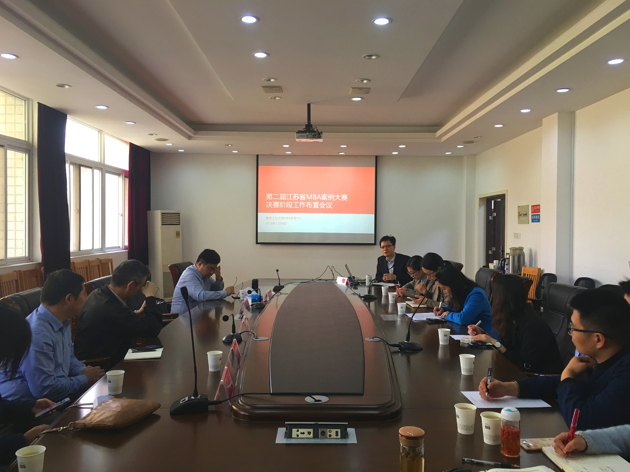 日前,由经济与管理学院MBA教育中心选送的案例“以退为进,橙红科技的战略转型之路”和“摔打出来的“智慧”——智慧朗坤平台的缔造”已顺利通过第二届江苏省MBA案例大赛晋级赛,双双获得决赛资格。为全力备战决赛,争创佳绩,11月4日上午,MBA教育中心在丁家桥教学楼520会议室召开了第二届江苏省MBA案例大赛决赛阶段工作布置会议。大赛指导教师刘和东教授、吴翔华副教授、曹国年副教授、倪卫红副教授、刘新艳副教授,所有参赛选手、18级MBA学生代表及MBA教育中心工作人员出席会议,会议由MBA教育中心主任张长江教授主持。