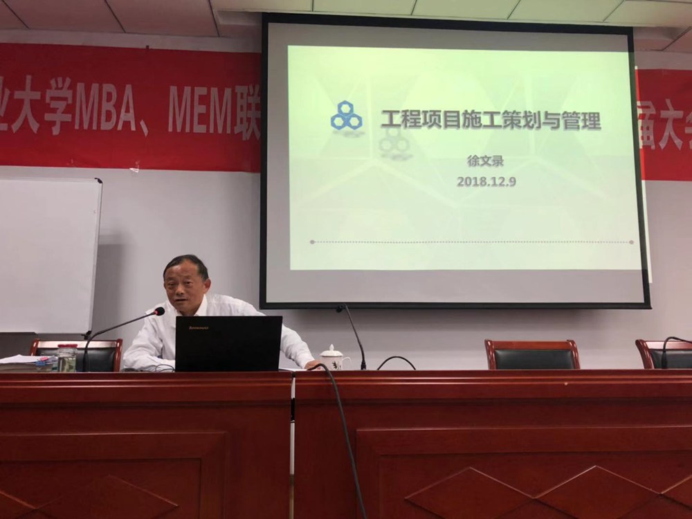 2018年12月9日,我院邀请中国化学工程第十四建设有限公司项目经理、江苏煌明建设项目管理有限公司总工程师徐文录先生,为全体MEM学生作了题为《工程项目施工策划与管理》的报告。报告会由MBA/MEM/MPAcc教育中心主任张长江副教授主持。
