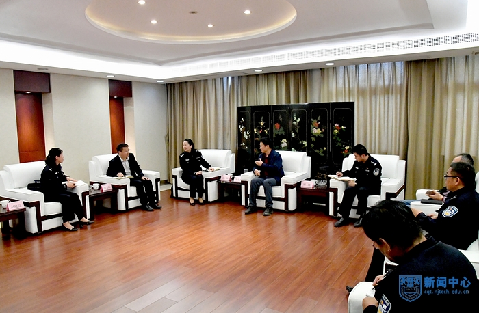 宣讲会前,牛生杰副校长在行政楼115会议室会见了王燕大队长一行并进行座谈。江北新区公安分局内保二大队刘维大队长、顶山派出所副所长邢向宇,我校校园安全部部长童政权、海外教育学院党委书记伏永祥等参加座谈。