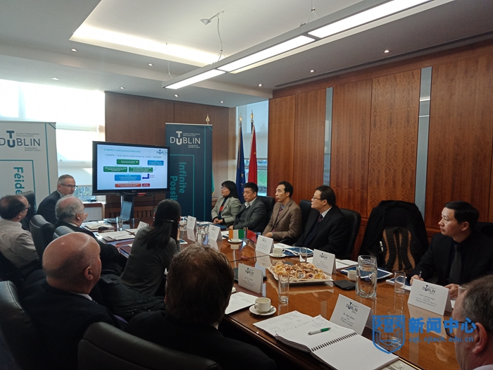 在爱尔兰都柏林理工大学,代表团参访了塔拉校区、市中心校区,与该校副校长玛丽·米妮(Mary Meaney)、塔拉校区负责人托马斯·斯通(Thomas Stone)以及研究生院、发展部、国际事务部、相关学院负责人进行了深入交流。赵志宏副校长表示,我校与都柏林理工大学的前身之一塔拉理工学院自2008年开始合作办学以来,双方密切协作,互相支持,合作办学成果丰硕,相信新合并成立的都柏林理工大学在综合实力、办学水平等方面将有实质提升。希望双方在现有合作的基础上,进一步拓宽合作领域、提升合作层次和质量。代表团还与我校正在都柏林理工大学学习的中外合作办学项目学生召开座谈会,赵志宏副校长代表学校向各位同学表示亲切问候,仔细询问学生在爱尔兰的学习、生活情况。代表团对学生提出的问题进行了一一回应,对学生提出的建议及时向都柏林理工大学有关人员进行了反馈和沟通,圆满解决了学生关切的学习和生活问题。