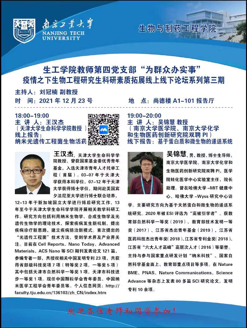 王汉杰/吴锦慧:生物工程研究生科研素质拓展论坛