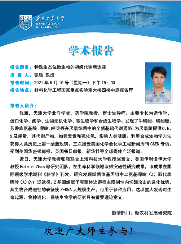 张雁:特殊生态位微生物的初级代谢新途径