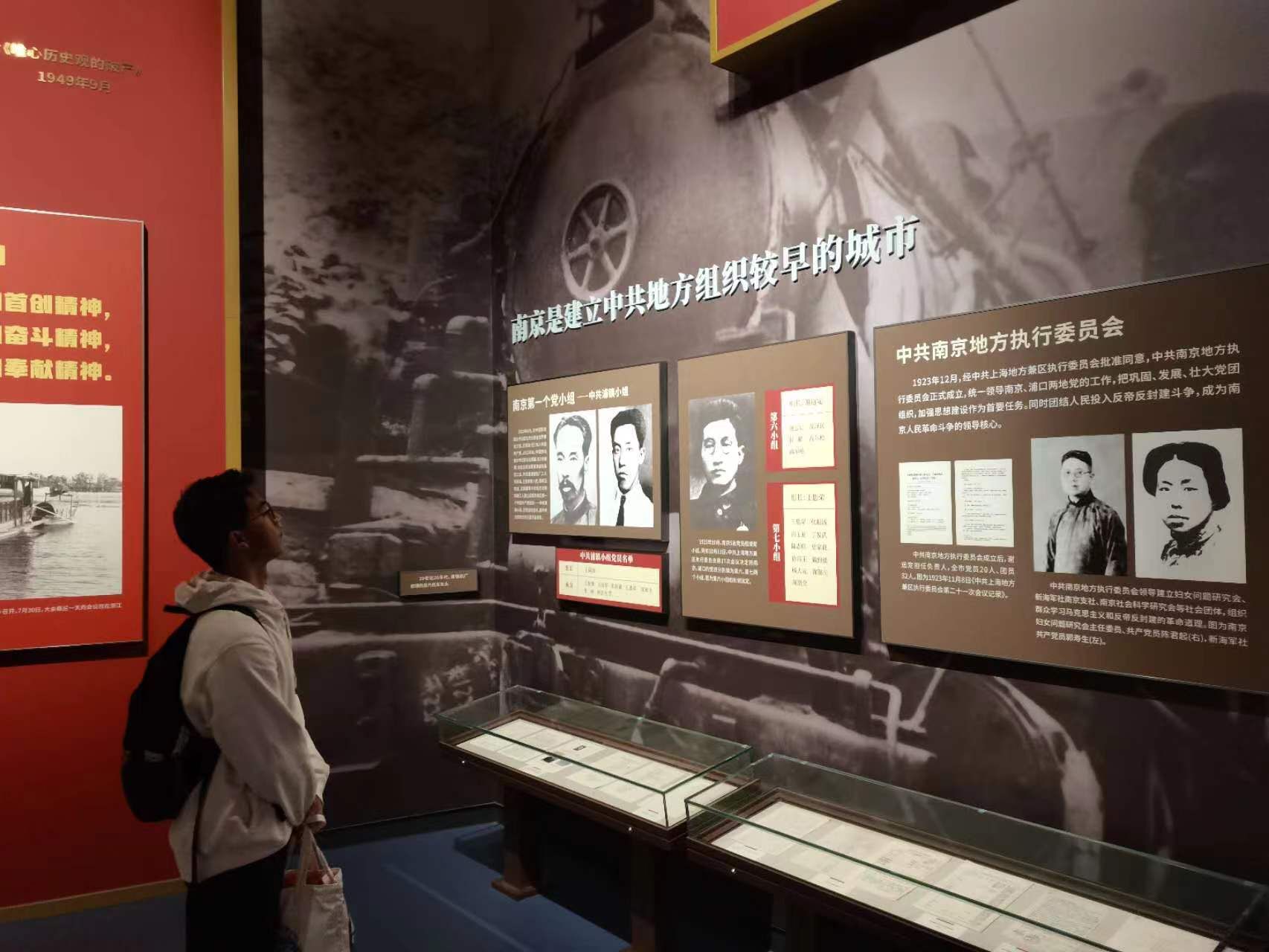 追忆峥嵘岁月,感悟革命情怀。在主展馆,支部党员们一起参观了“天翻地覆慨而慷——渡江战役胜利暨南京解放展”,沉浸式感受百万雄师横渡长江的壮阔场景,感悟革命先辈们英勇无畏、不怕牺牲的革命精神。在党史馆,参观“人间正道是沧桑——中国共产党南京历史展览”。展览以“不忘初心,牢记使命”为主题,全面展示了在中国共产党领导下南京人民革命、建设和改革的奋斗历程。通过展览,党员同学们重温历史,深刻感受到中国共产党为人民谋幸福、为民族谋复兴的初心使命,在党史学习教育中汲取奋进力量,同时更加筑牢理想信念。