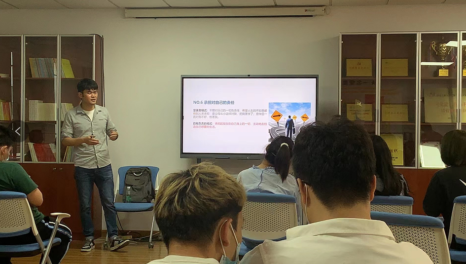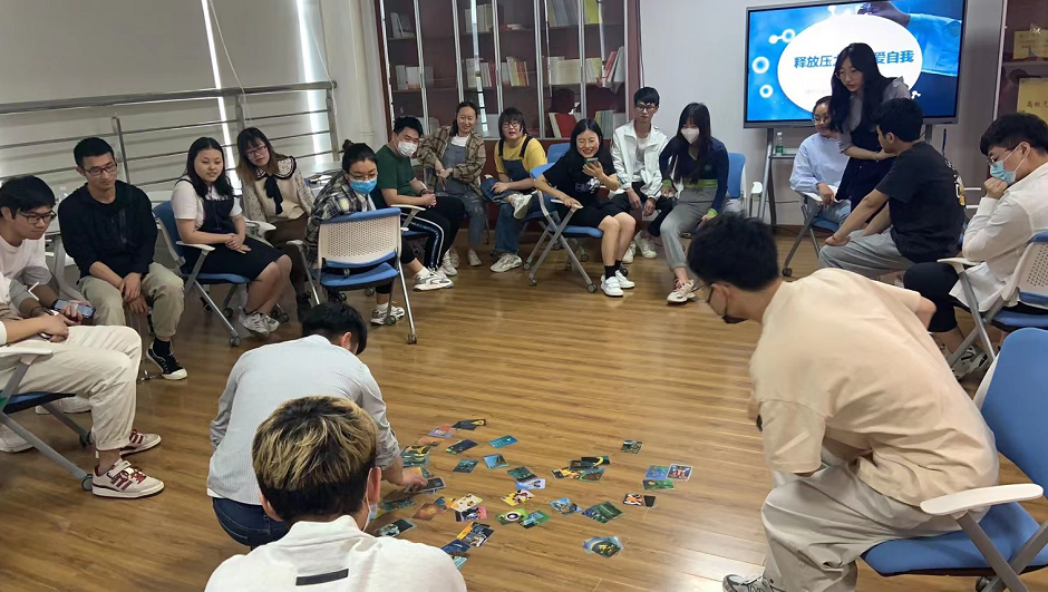 活动开始前,同学们通过“排排队”、“分组滚雪球”等趣味小游戏,活跃了气氛,也增进了成员之间的默契。热身活动之后,林启修老师带领同学们以挑选心仪卡片,并将卡片背后的故事与同伴分享的形式进行了简单的心理测试。接下来林启修老师从研究生的生活、学业、和就业等多方面产生的心理问题为同学们进行了专题讲座。