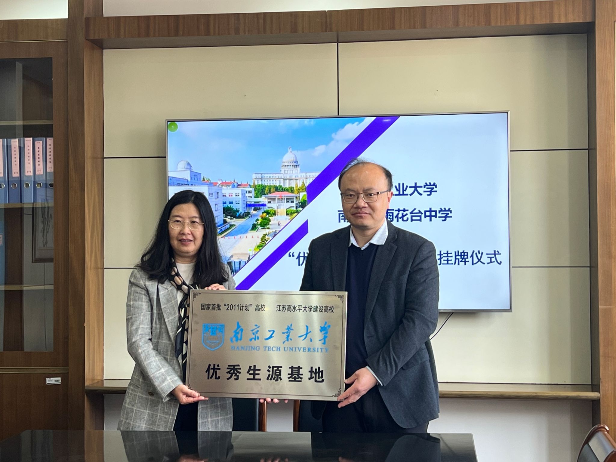 4月26日,我校在南京市雨花台中学举行“万博体育bet 优秀生源基地”挂牌仪式。雨花台中学党委书记、常务副校长周茜,雨花台中学副校长刘进全,教务处主任胡景月,招生办公室主任黄贵强;生物与制药工程学院党委副书记、纪委书记徐元龙及相关老师出席仪式。挂牌仪式由雨花台中学副校长刘进全主持。