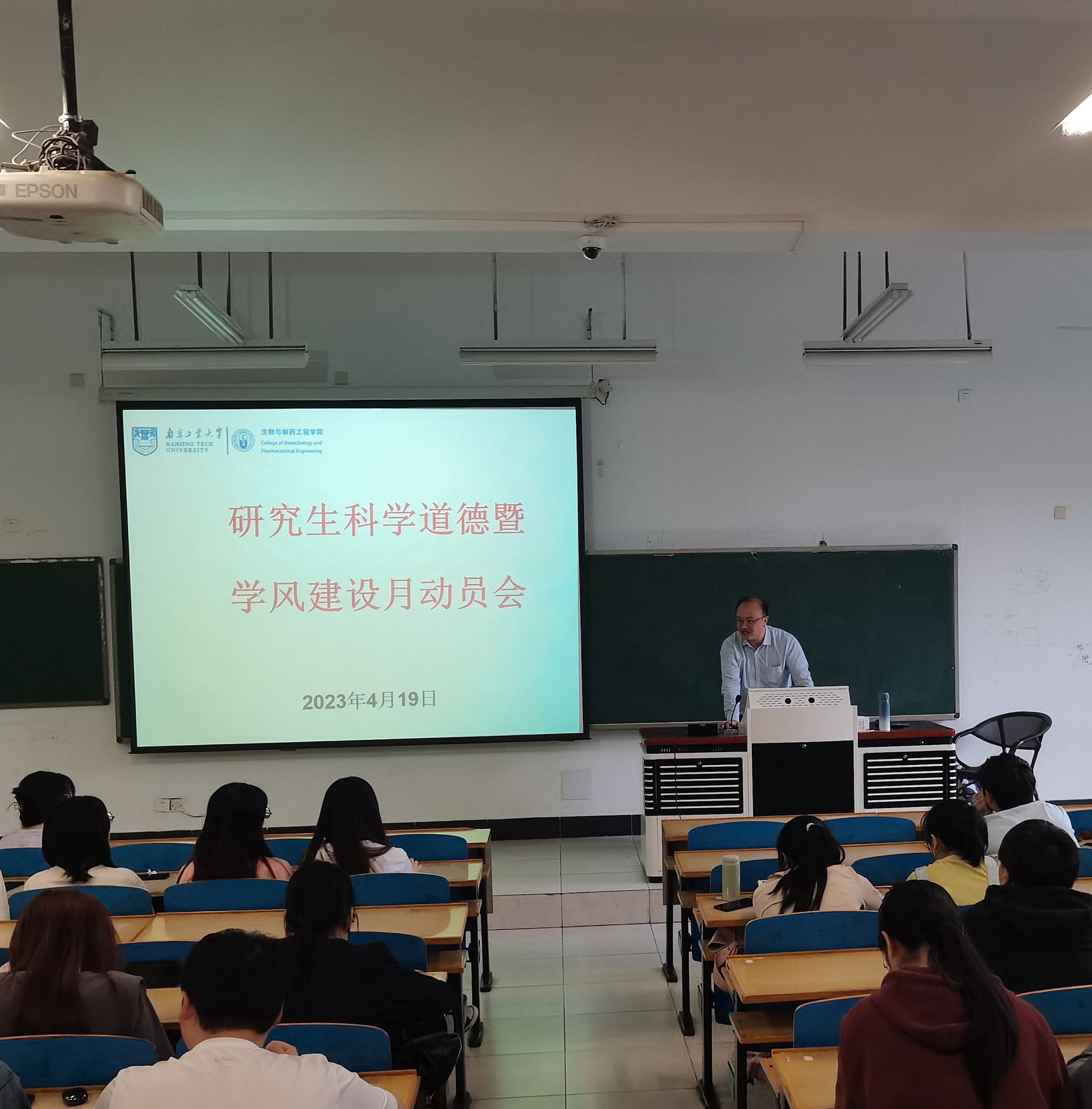 4月19日下午,生工学院在厚学201举办研究生科学道德和学风建设月动员会。生工学科群2022级研究生200余人参加活动,由学院党委副书记兼纪委书记徐元龙主讲。