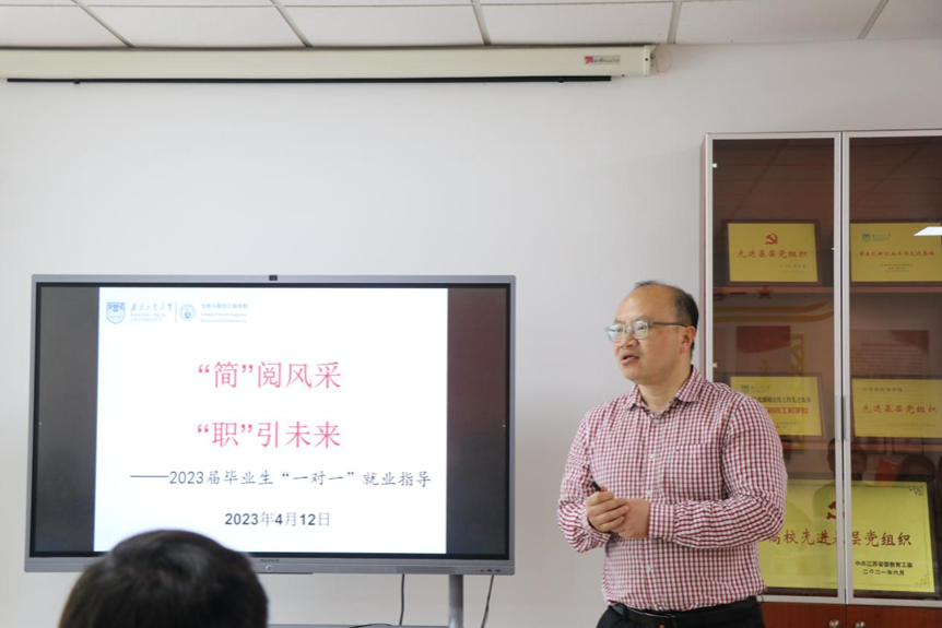 2023年4月18日下午,生物与制药工程学院在尚德楼A208召开促就业攻坚行动系列活动“简”阅风采,“职”引未来讲座。2023届未就业毕业生参加此次讲座。讲座由学院党委副书记兼纪委书记徐元龙主讲。