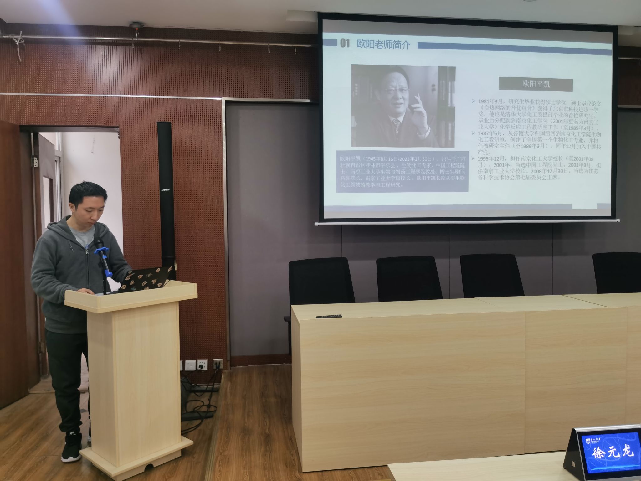 首先,徐书记简要介绍了欧阳院士生平,以及欧阳院士对学校、学科及学院发展的重大贡献和深远影响,并表达了深切缅怀。大家通过欧阳院士专题纪念视频,回顾了他在科学研究、服务产业、学科建设、教书育人以及办学治校等领域做出的卓越贡献。欧阳院士生前指导的学生代表回顾了老先生对他们的悉心教导和呵护,让大家感受到了一代宗师的崇高风范。学院原党委书记、原院长韦萍老师,学院副院长贾红华老师深情追思了与欧阳院士的共事岁月,将他在工作与生活中的点点滴滴娓娓道来,使他的形象在同学们心目中变得更为生动立体,让同学们更深刻地领略了欧阳平凯精神的本质和内核。