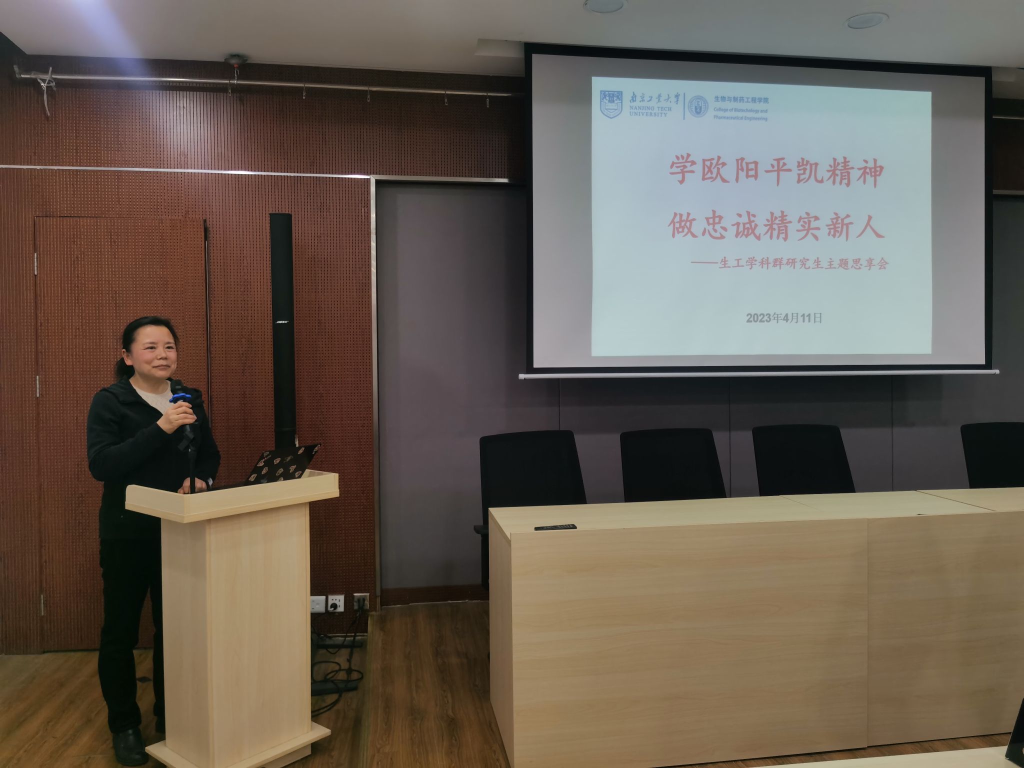 为深入学习传承欧阳平凯院士精神,4月11日下午,生工学院在尚德楼报告厅举办“学欧阳平凯精神,做忠诚精实新人”研究生主题思享会。校关心下一代工作委员会副书记、学院原党委书记缪昌美,学院原党委书记、原院长韦萍,学院党委书记高振,副院长贾红华,研究生辅导员及研究生代表等共计100余人参加活动,活动由学院党委副书记、纪委书记徐元龙主持。