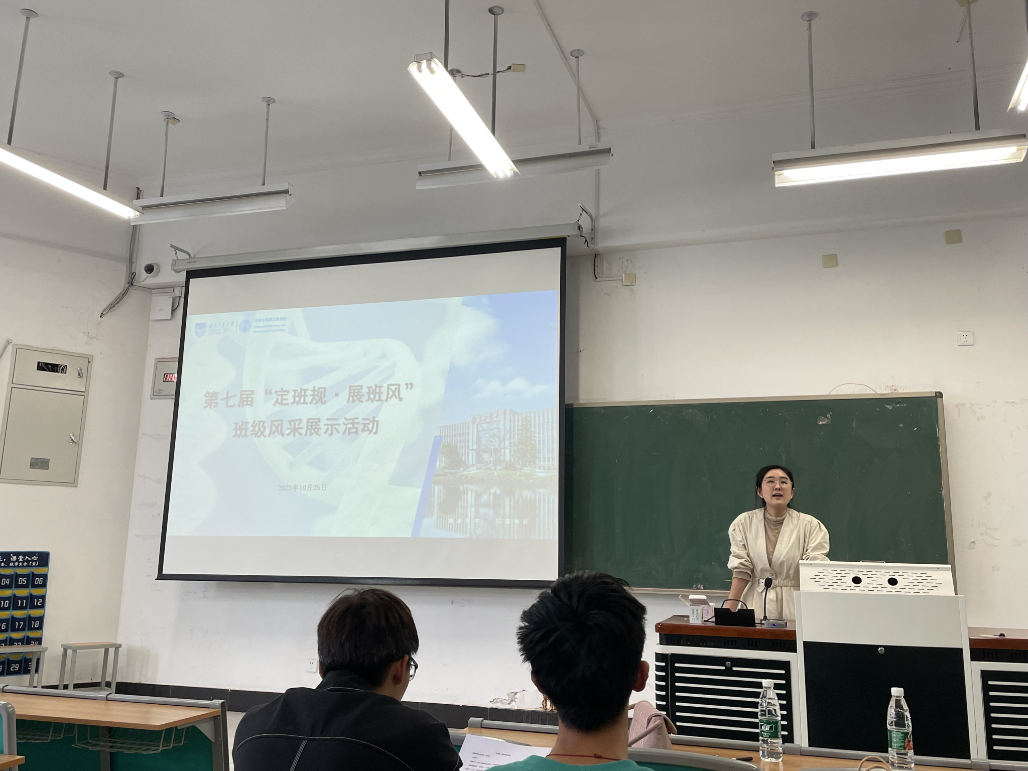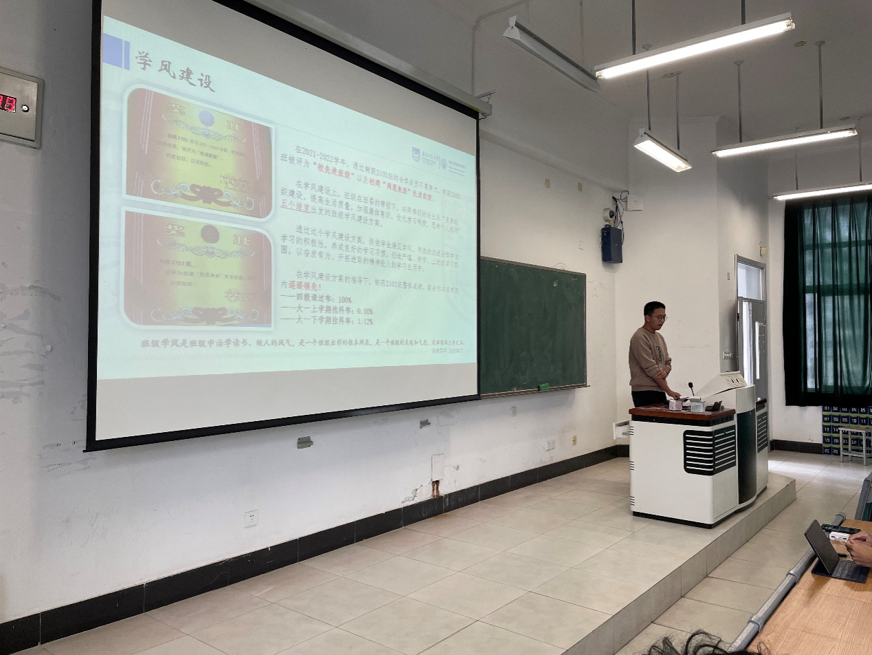 活动伊始,贺鑫老师介绍了本次活动的目的和评选办法。本次活动持续3个小时,参赛班级积极展示班级班徽、海报、班风学风建设方案,班级视频等,充分体现了班级文化,内容精彩纷呈,台下掌声不断。