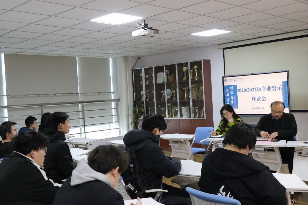 本次主要围绕学生学习情况,问题根源,解决措施进行交流讨论。在会上,每位同学就自己受到警示的原因、准备采取的办法和目前遇到的困难等问题进行发言。警示主要原因集中在三个方面:一是没有重视学习、缺乏良好学习态度,存在畏难情绪;二是过度放松自己,沉迷于网络游戏,每天保障学习时间不够;三是对部分课程有抵触,上课坐后排,听课效果有限,课前课后没有及时有效预习和复习。徐元龙副书记和贾红华副院长仔细询问每一位同学的挂科科目情况和学习进展,提出了一系列针对性强的提升学习成效的建议,着重强调了端正学习态度、制定并执行有效学习计划以及与授课老师沟通的重要性;学院将积极联系成绩优异的同学与相关同学结对辅导,帮助同学们有效解决知识难点。贾老师针对大家学业情况表示将积极协调相关老师,对于同学们存在的知识盲点进行有针对性的辅导,以便帮助他们更好地理解和掌握课程内容。