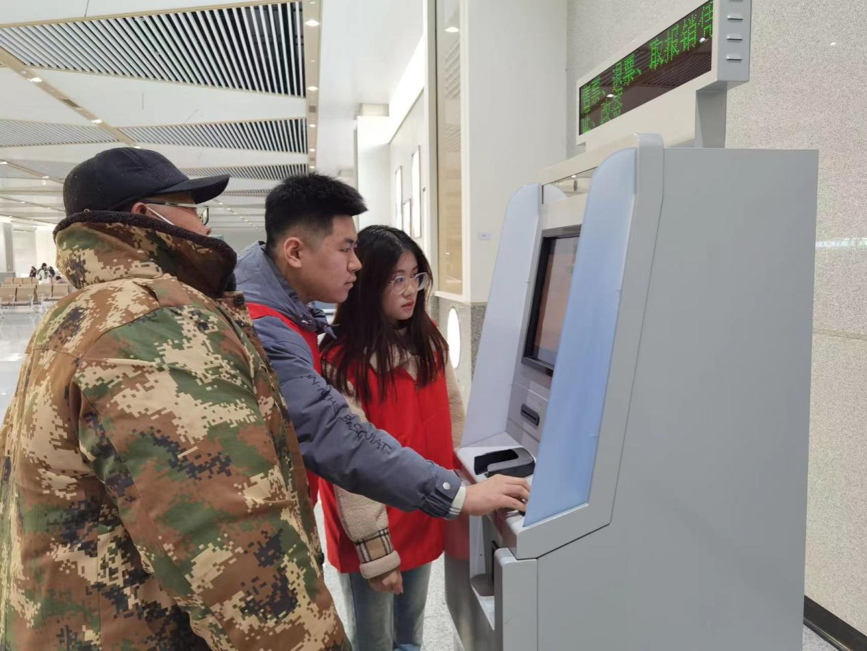 春运返乡,为保障游子归途顺利,生工2101班李福宸同学积极投入2024年东海县青年志愿服务春运“暖冬行动”,开展为期一个月(含春节)的志愿服务。进站口、安检区、候车厅都成为李福宸同学的工作场所,咨询指引、行李搬运、票务协助、引导乘车、普法教育、新春送福等每一件小事都让步履匆匆的返乡旅途充满温暖,李福宸同学也在志愿服务中收获感动,身着红马甲充分彰显青春本色。