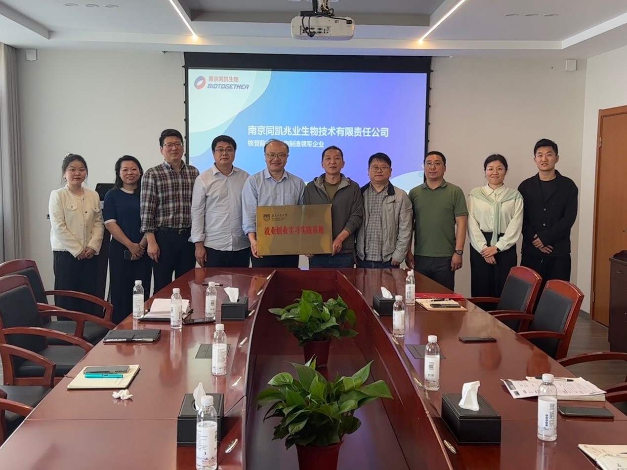 为进一步推进校企深化合作,促进产学研融合发展,提升大学生专业素养,5月10日下午,生工学科群赴南京同凯兆业生物技术有限责任公司开展访企拓岗暨就业创业实习实践基地共建活动。生工学院党委副书记徐元龙、副院长庄伟、食品与轻工学院党委副书记王浩等参加共建活动。