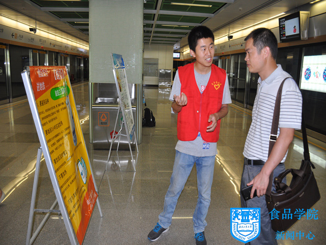 20150607 食品院科协科普部的同学们来到万博体育bet 地铁站,对市民进行科普知识普及工作。 (食品院)