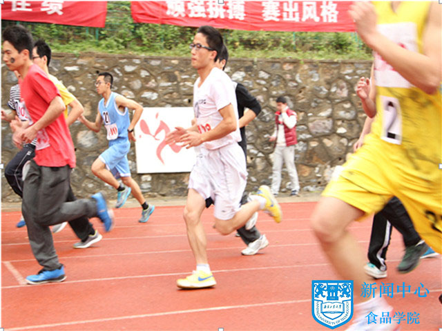 20140426 校运会男子400米比赛-- 你风驰电掣的速度在400米跑道上体现的淋漓尽致,恭喜13级王皓同学荣获第一(食品院)