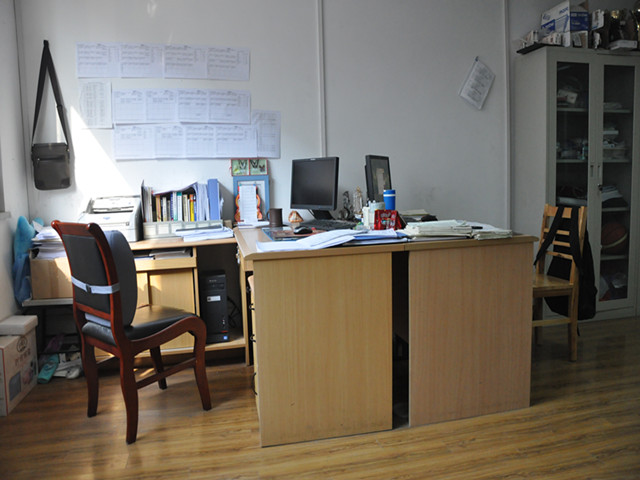 20130502 学办难得的安静时刻,墙壁上王老师的包、满满的课表和党员谈话反馈表,似乎都在享受下午的阳光(食品学院)