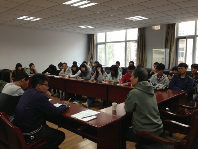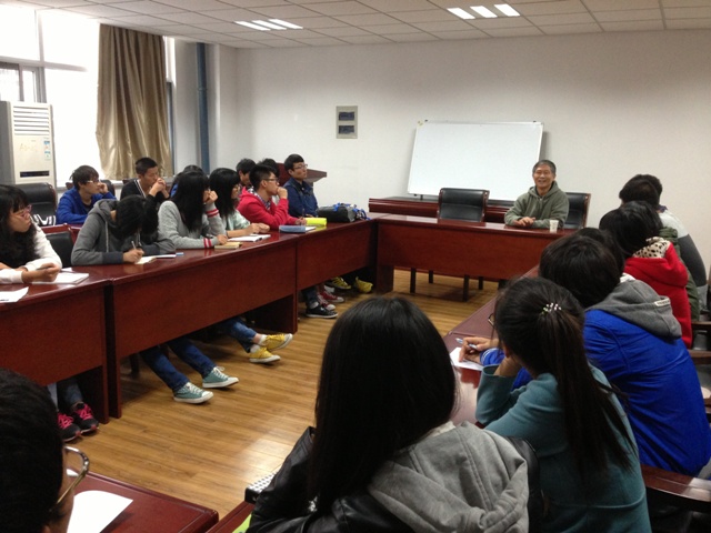 张赣道,华东理工大学1983届研究生,主攻生物化学与化学工程,在国外发表了多篇高水准科技论文,参与完成了"863(子课题)"、"八五攻关项目"、"省部重点攻关项目"等十余项科研课题,彰显老一辈科学家刻苦钻研、埋头苦干的科研精神。此次会谈,张先生就食品与轻工这两个专业的就业现状与前景作了深入剖析。他强调,民以“食”为天,民以“物”为用,而食品与轻工这两个专业恰好与人们的食与用息息相关。他还说道,新一代大学生应把握机遇,努力学习科学文化知识,并不断提高综合素质。张先生在与老师和同学们的交谈中,“转基因产品”作为一个新兴名词被多次提及。国内外对这种新生事物态度不一,而对于我国要如何改善“有产量没有质量”的现状,张先生对同学们寄予了厚望。他一再指出,对于未来,要有“粗的打算,细的计划”,要牢记“身体是革命的本钱”。会议进行到下午5点许。张老师不舍地结束了与同学们的交谈,准备前往下一目的地播撒智慧的种子。