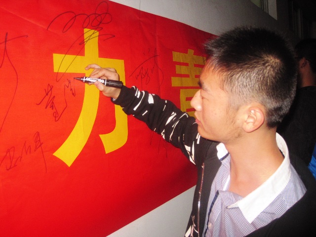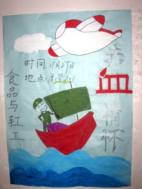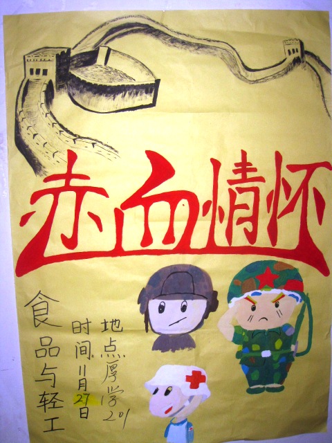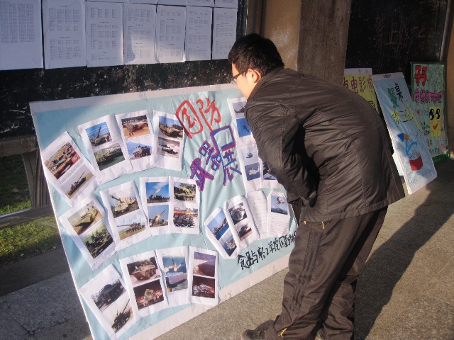 晚上六点,国防协会组织大一新生一起观看军事纪录片。电影放映之前,教室便坐满了人,虽然外面还是寒意袭人,却抵不住教室里同学们的满腔热情。随着电影高潮部分的来临,同学们似乎也被深深地吸引进画面,战士们冒着枪林弹雨,奋不顾身地冲向敌人的枪口,这些场景深深地震撼了全场同学,看得人心潮澎湃,对先烈们的敬仰之情油然而生。虽然最后电影结束了,但是同学们的热情并没有散,在看完电影后,大家积极发言,争先恐后的抒发自己内心的那份赤色情怀,并在门外的红色横幅上慎重地签上了自己的名字来表示对革命先烈的怀念。此外活动现场还通过张贴九一八图片,抗日英雄的相关照片、文字以及对中国现代军事实力的瞻望,例如航母以及其他军事武器等。一幅幅或壮烈或震撼人心的图片吸引了同学们的眼球,大家站在照片跟前久久迈不开脚步。
