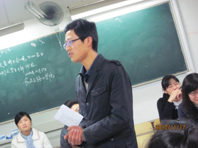 首先发言的是原学生会主席黄博同学。她重点讲述了她在学生工作方面的经验。她讲述了自己如何从一个小干事逐渐成长为一院主席,告诉大家只有积极参与工作,主动思考,同时把思考的结果落实到行动上,才会脱颖而出,给别人留下良好的深刻的印象。身兼食品与轻工学院学生会副主席、学生第一党支部书记、班长等多项职务的优秀学长刘毅则向学弟学妹们阐述了该如何管理好一个班级。他说一个优秀的管理者不能一味地命令他人,而应该站在一个与他人平等的角度上,虚心听取他人的意见,有选择地制定自己的决策,才能为自身所在的组织谋得最大化利益。刘可可以及杨冬青两位同学工作出色并且多次荣获校内外奖学金,他们以自身的经历告诉新生们,学习和工作是不矛盾的,对待学习要做到今日事今日毕,对待工作要有激情和责任心,这样才能学业、工作双丰收。此外,其他的几位学长、学姐也都毫无保留地和大一学弟学妹们分享了自己的宝贵经验。在场的大一同学听得全神贯注,不时地记下学长、学姐们的箴言,不知不觉间夜已深了,会议也接近了尾声。