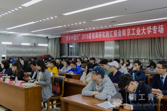 汇报会上,校团委副书记王郁超向 “青年中国行”主办单位表示感谢,并介绍了学校从2014年至今参加“青年中国行”社会实践的基本情况。雷雪蓉主任介绍了 “青年中国行”项目概况,鼓励更多南工学子加入实践队伍。由我校机械与动力工程学院、计算机科学与技术学院、电气工程与控制科学学院黄栋杰、阮欣伟、周欣悦、谈阳、唐思倩等五位同学以《节能荧光灯淘汰进度以及生产回收污染环境状况调研》为题,从前期准备、项目介绍、调研过程、结果分析、思考分析五个方面展开汇报,分享实践心得,并现场回答观众的提问。团队指导老师肖勇强和机械与动力工程学院党委副书记付昌义老师分别对调研报告和调研团队进行点评。