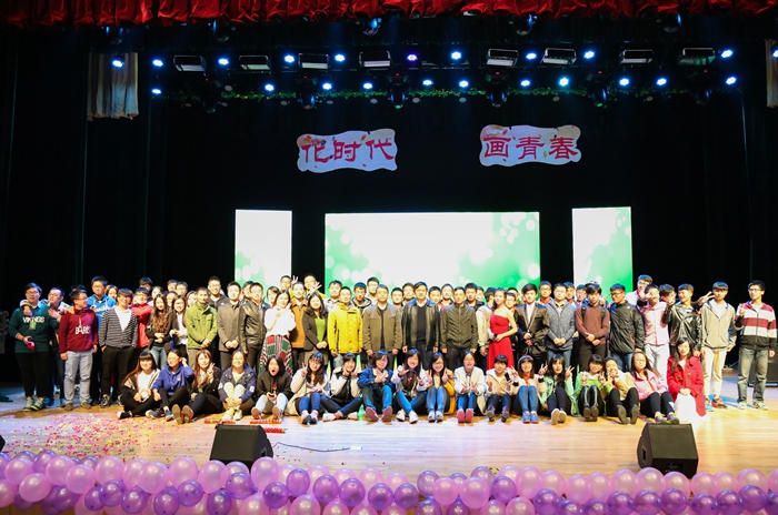 晚会结束后,学院领导、老师和所有演职人员一起合影。今天,化工15级新生用青春风采为大学生涯画下了浓墨重彩的第一笔,祝愿他们在未来的四年中,在化工学院奋发图强,携手共进,开创属于青春的“化时代”。