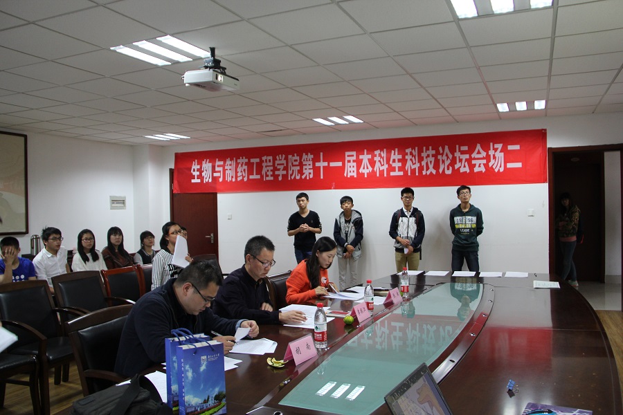 10月10日下午2点,本届本科生科技论坛比赛在生工楼A207、A210同时开始。生工学院院长韦萍、副院长李振江、党委副书记周辉以及胡南、陈可泉、张敏等教授担任此次比赛的嘉宾和评委。