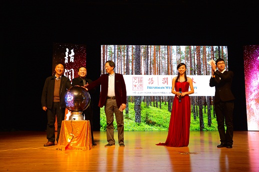 晚会前,外语学院院长尹富林教授、土木学院党委书记胡夏闽老师致开幕辞。致辞中,尹院长对向两院全体新生表达了最热烈的欢迎,也对两院的素质共建表示了深切殷望,并附词一首,谆谆教诲:“外院喜携手,土木儿郎。追梦路上竞分享,南工学子多壮志,扬帆远航。”胡书记则展望两院合作前景,希望学子们锐意进取,共创美好前程,预祝两院联合举办的盛会圆满成功,并对今后两院的深层次合作寄予美好期望。